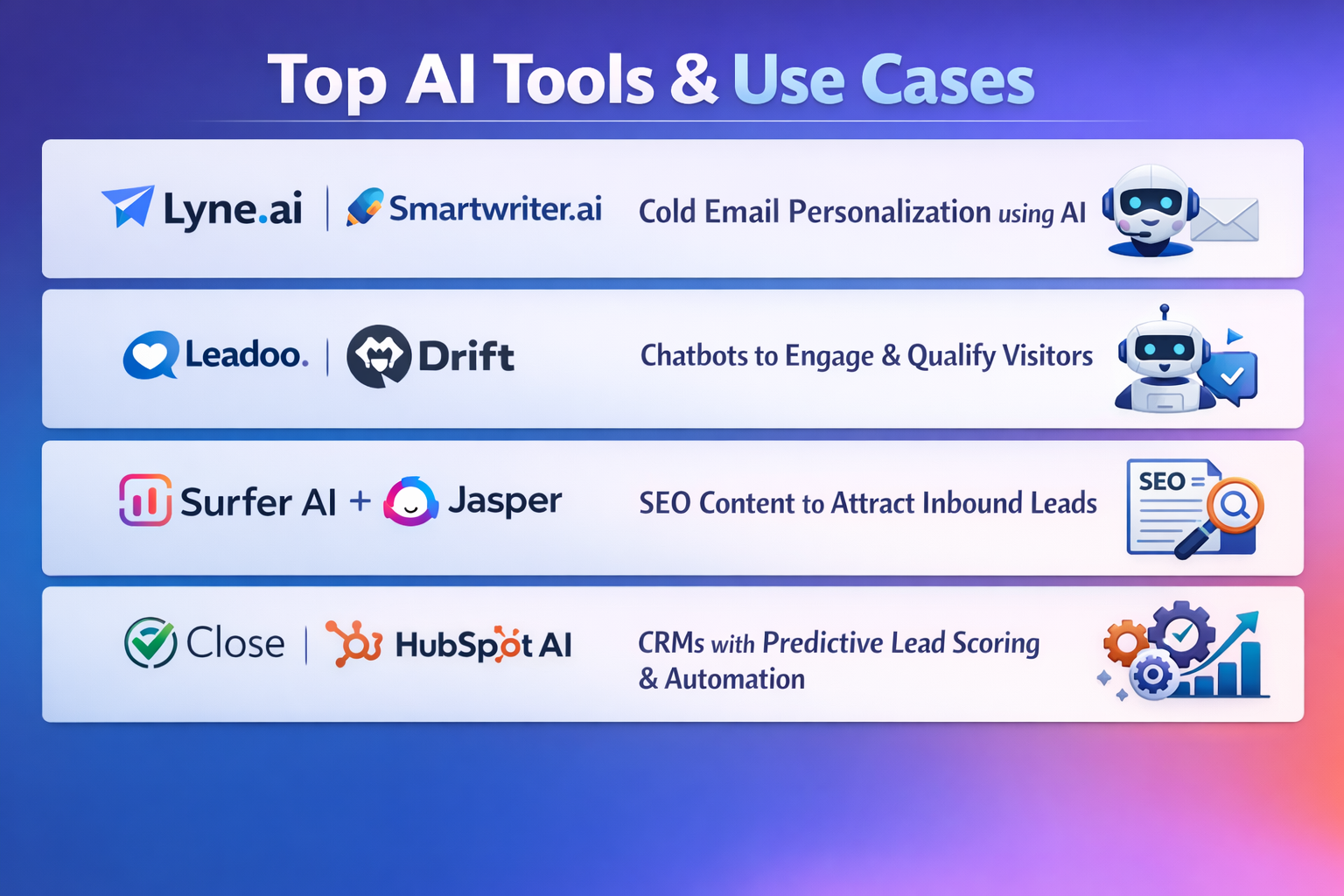 Here are just a few tools agencies are leveraging in their AI-first lead generation stack: